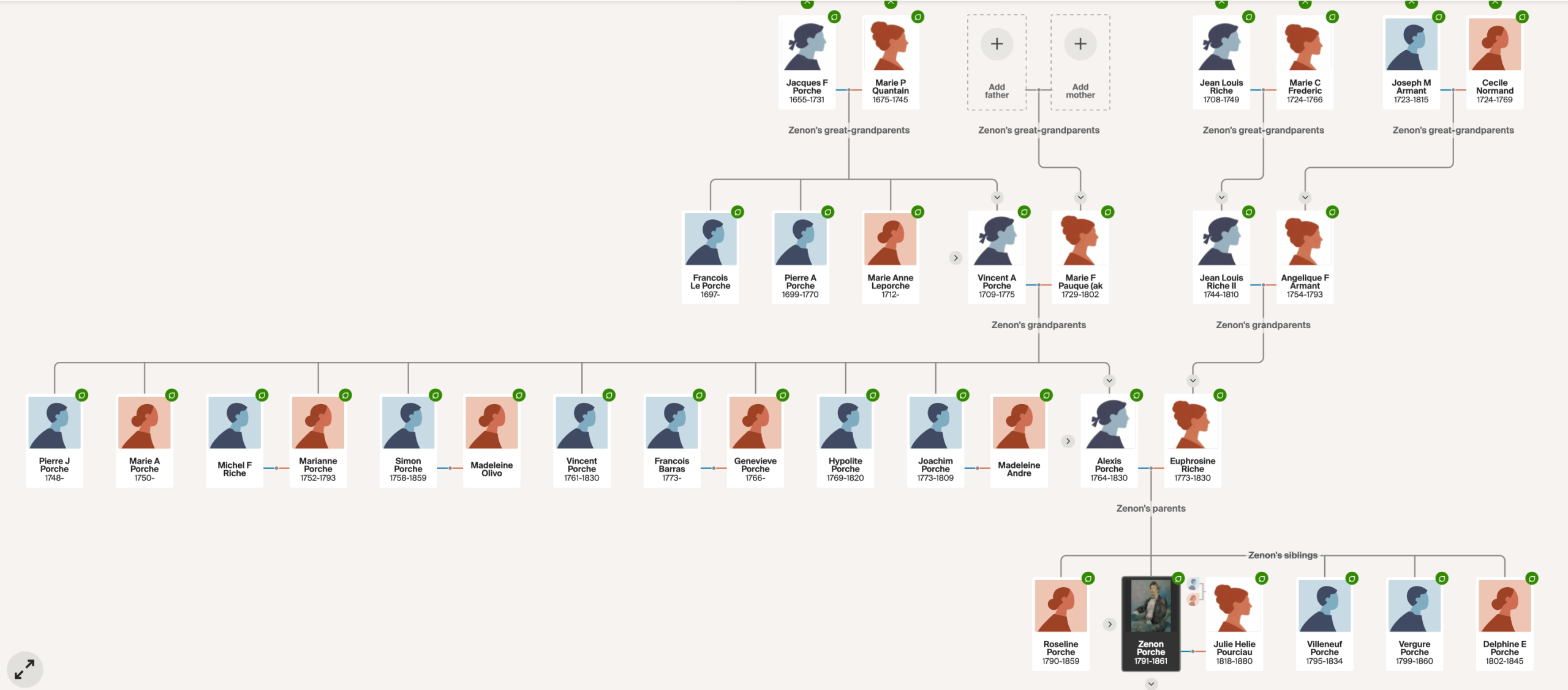 Below is the actual text from the biography of Zenon along with his ancestors and descendants. This is my first interaction with Wikitree and Zenon’s page is very detailed. The information was provided by Thaddeus Norman. You can see more of what he found about the Porche and Riche families on WikiTree. Thank you to Thaddeus for his detailed research. For source information refer to the link above.