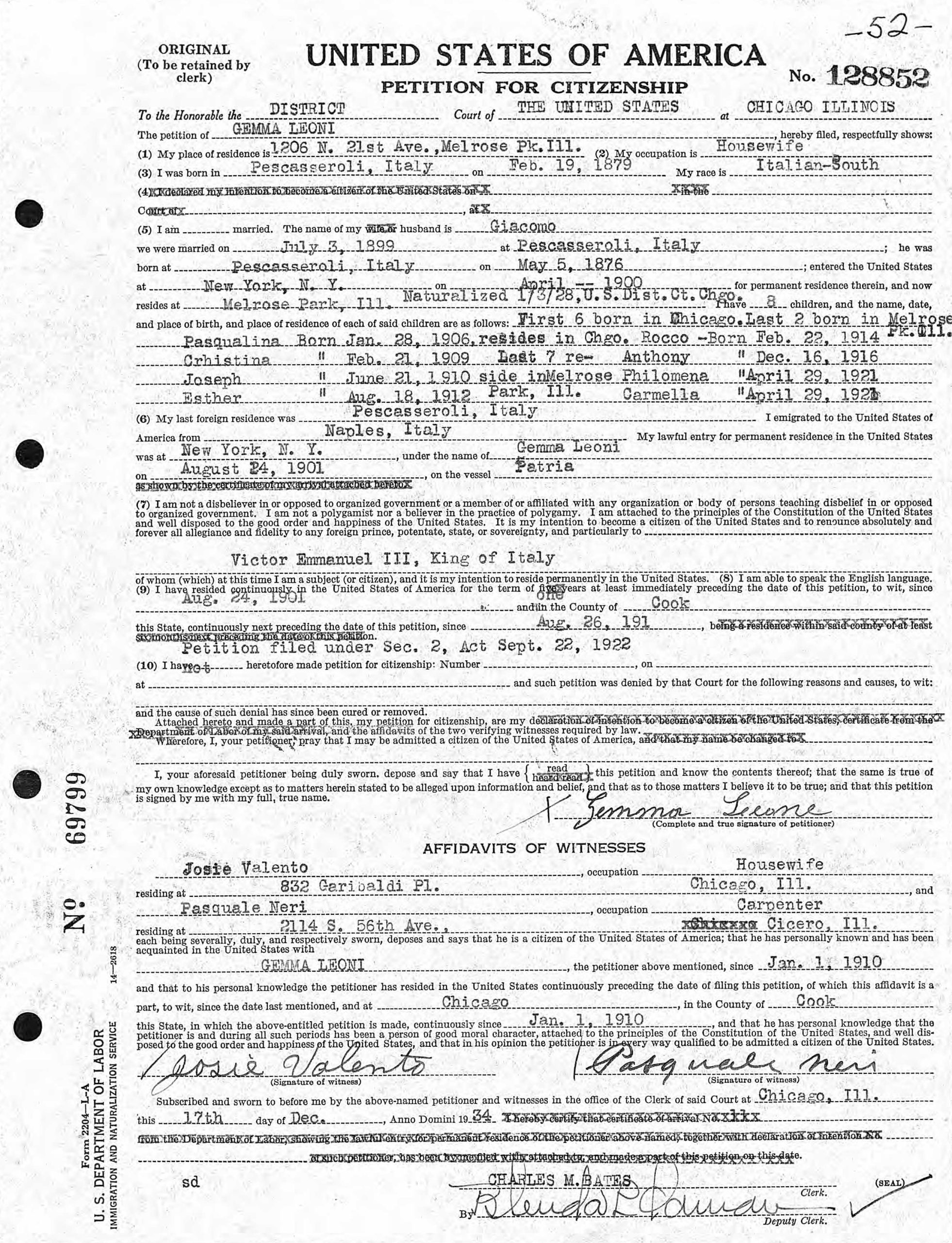 What a wonderful story, thank you for sharing it Giacomo. Click the image below to read Gemma’s petition for citizenship which she applied for on 17 Dec 1934. Click here to read more about Gemma and here to read more about Gemma’s journey to America.